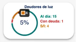 Esta primera pestaña muestra toda la información relacionada con las deudas de las propiedades que tiene cada cliente. Estas se encuentran segmentadas por servicio (agua, luz, gas, según corresponda) y estado (servicio al día, en mora, sin información).