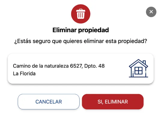 Automáticamente se despliega un mensaje de consulta final sobre la eliminación al cual solo se debe dar click en SI, ELIMINAR y automáticamente la propiedad queda eliminada del portal.