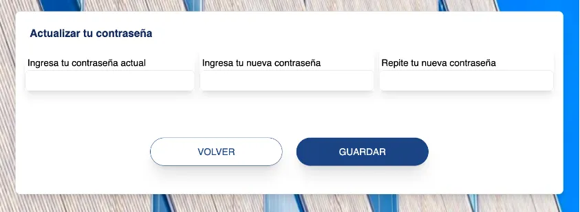 Desde aquí podemos actualizar nuestros datos de contacto y cambiar la contraseña por motivos de seguridad. Para ello, ingresamos a “Perfil” y seleccionamos la opción “Cambiar contraseña”.