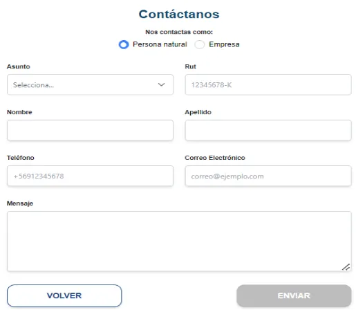 - Región: Ingresar la región de procedencia (Biobío, Metropolitana, etc.).